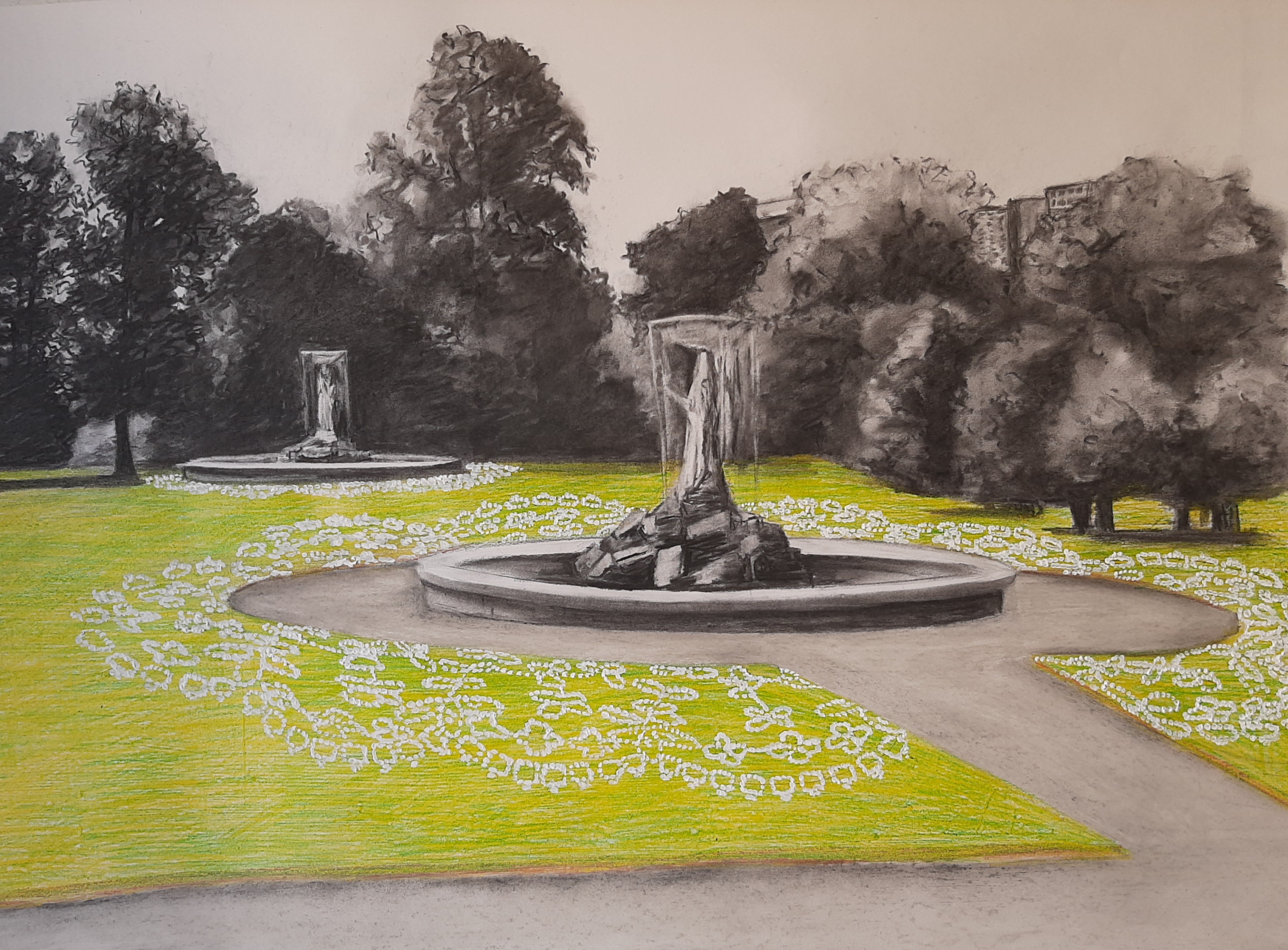 lost lace drawing - fountain 55x75cm