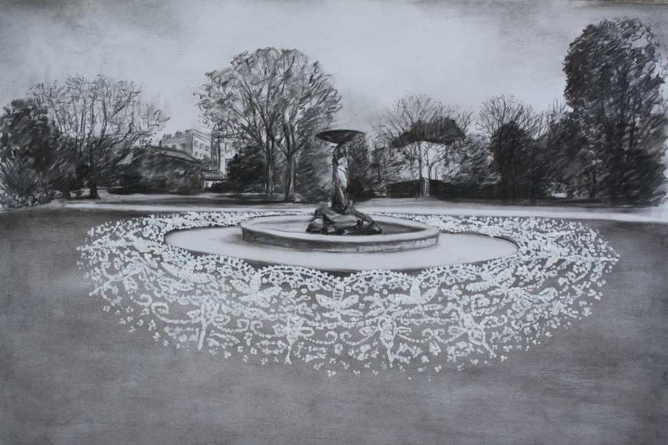 lost lace -drawing - iveagh gardens 55x75cm charcoal and penci